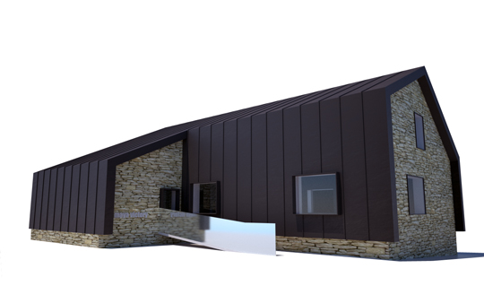 Pozostałe fragmenty budynku pokryte zostały okładziną kamienną.