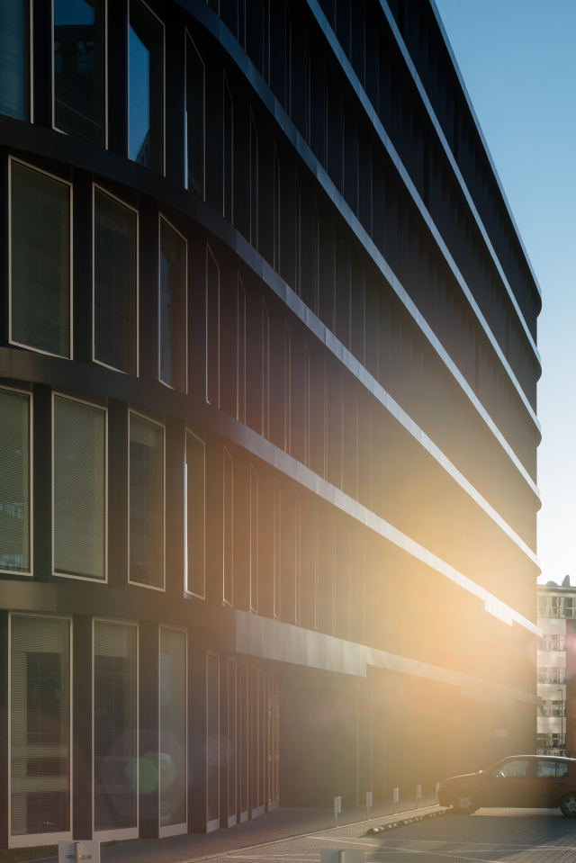 Elewację budynku jest transparentna, szklana w systemie ślusarki okiennej z wyraźne zaznaczonymi poziomami poszczególnych stropów. Przewidziano wyjście na dach budynku przeznaczony jako przestrzeń relaksu dla użytkowników biura. Takie rozwiązanie pozwoliło zróżnicować standard przestrzeni biurowych oraz poprawi jakość i komfort pracy użytkowników.